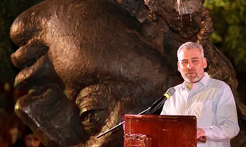 Jiquilpan, Michoacán (MiMorelia.com).- El gobernador Alfredo Ramírez Bedolla, acompañado del presidente municipal de Jiquilpan, José Elías Barajas Bautista, inauguró la exposición "Tres Cabezas", del artista michoacano Javier Marín, que permanecerá en este pueblo mágico durante un año.
