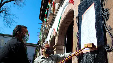 Pátzcuaro, Michoacán (MiMorelia.com).- Se realizó la pega del Bando Solemne por parte del presidente municipal, Julio Arreola Vázquez, así como por la Síndico Claudía Berenice y el Cuerpo de Regidores, con motivo del 487 Aniversario del Otorgamiento de Título de "Ciudad de Mechoacan" a Pátzcuaro, donde se anuncian las actividades.