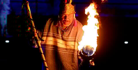 Pasadas las 20:00 horas del jueves, el espectáculo comenzó con la proyección de imágenes en las que se narró la historia del antiguo imperio purépecha, luego se llevó a cabo un ritual prehispánico para la apertura del cosmos con incensarios encendidos y sonidos de caracoles que prevalecieron en medio de la noche.