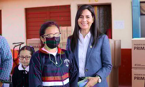 Madero, Michoacán (MiMorelia.com).- La secretaria de Educación, Gabriela Molina Aguilar, encabezó la entrega de lentes del programa “Ver bien para aprender mejor” y de materiales escolares en Villa Madero.