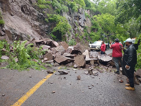 A decir del Centro SICT Michoacán, el deslizamiento de materia rocosa fue en la carretera Carapan-Playa Azul, en el kilómetro 123+350, lo que llevó al cierre total a la circulación.
