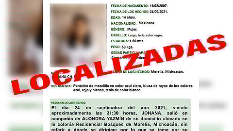Por este hecho se activó el mecanismo de búsqueda establecido en la Alerta Amber y se emprendieron acciones que permitieron su localización en el municipio de Apatzingán, sitio donde fueron aseguradas y presentadas ante el Ministerio Público que integró la investigación.