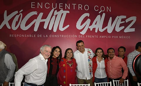 Memo Valencia insistió a Xóchitl Gálvez que no debe tener duda de la lealtad e institucionalidad de los priistas quienes están “muy orgullosos de que usted sea ese factor de unidad entre las más importantes fuerzas políticas en México, de los priistas no tenga duda hemos dejado claro que estamos del lado del Frente, que estamos del lado de Xóchitl Gálvez”.