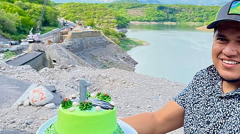 Fue a través de la página de Facebook Soy de Nueva Italia Vali que compartieron el momento en que llevaron un pastel hasta la zona del derrumbe de la autopista, a la altura de la presa Francisco J. Múgica.