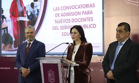 Morelia, Michoacán (MiMorelia.com).- Este lunes se publican a nivel nacional las convocatorias de admisión para nuevos docentes del servicio público educativo, y en próximas horas se dará a conocer la correspondiente a Michoacán que prevé pueda sumar a alrededor de mil docentes a las aulas michoacanas, informaron el gobernador Alfredo Ramírez Bedolla y la secretaria Gabriela Molina Aguilar.