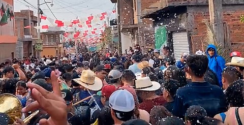 La información fue compartida en redes sociales por la página local “Yo Soy Villachuato Michoacán”, donde se alertó sobre los daños temporales en la vista provocados por el contacto de este producto con los ojos de los asistentes de las tradicionales mojigangas.