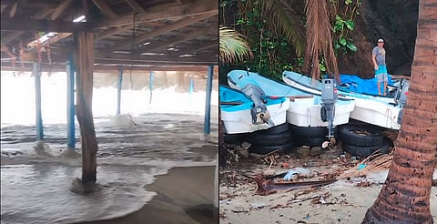 En la grabación, se escucha al hombre decir: “Hasta la cocina se mete el mar”. También muestra varias lanchas estacionadas cerca de las palapas: “Ahí las arrumbamos, donde quepan”, señala, mientras explica que les quitan los motores para evitar daños y les colocan llantas como soporte, con la esperanza de que el oleaje no se las lleve.