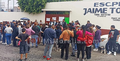 Morelia, Michoacán (MiMorelia.com).- Luego de que esta mañana padres de familia de la escuela "Jaime Torres Bodet", del fraccionamiento Puerta del Sol, municipio de Tarímbaro, se manifestaron en exigencia de que se atiendan sus demandas, la Secretaría de Educación en el Estado (SEE) informó que ya se trabaja en el llamado.