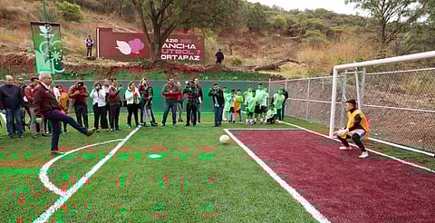 El mandatario informó que con una inversión de 94 millones 300 mil pesos del Fondo para el Fortalecimiento para la Paz (Fortapaz), se construyeron 41 canchas en 40 municipios de la entidad, a fin de generar espacios públicos para la convivencia familiar y puntos de encuentro para que los jóvenes y niños puedan divertirse de forma libre.