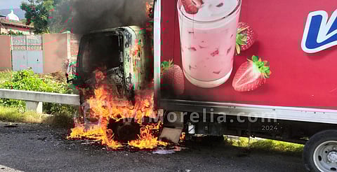Apatzingán, Michoacán (MiMorelia.com).- La mañana de este jueves, sujetos se apoderaron de un camión repartidor de lácteos y le prendieron fuego para bloquear la carretera Apatzingán - Buenavista, en una aparente respuesta a los enfrentamientos armados ocurridos en Tepalcatepec.