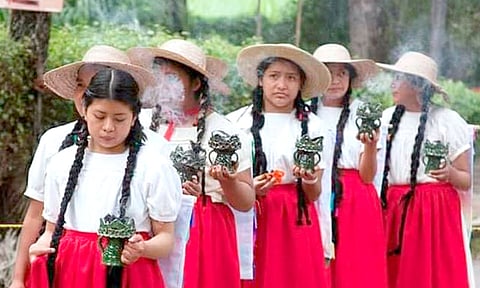 Morelia, Michoacán (MiMorelia.com).- Estudiantes mujeres del Telebachillerato Michoacán 138 de la comunidad de San Isidro, en el municipio de Los Reyes, trabajan por iniciativa propia en rescatar y conservar las danzas tradicionales de sus ancestros, las cuales se han transmitido de generación en generación. Es el caso de “La lluvia”, que ejecutan para invocar la fertilidad de la tierra y la paz en el mundo.