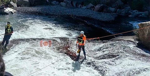 Los Reyes, Michoacán (MiMorelia.com).- Luego de 3 días de intensa búsqueda, la tarde de este viernes, finalmente fue localizado el cuerpo sin vida del joven que se ahogó el pasado martes junto con un familiar, en la zona protegida de Los Chorros del Varal, en este municipio de Los Reyes.