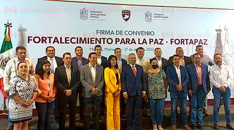 Michoacán (MiMorelia.com).- El gobernador de Michoacán, Alfredo Ramírez Bedolla y un segundo grupo de 19 presidentes municipales firmaron el convenio para el Fondo de Fortalecimiento para la Paz (Fortapaz), recurso que se destinará para el mejoramiento de las policías municipales y crear programas de prevención del delito en cada municipio.