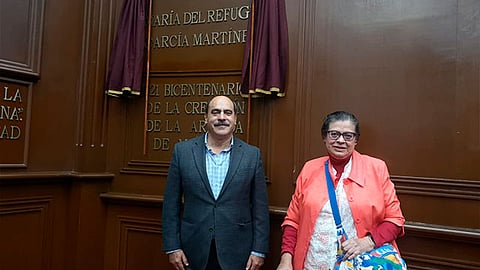 El presidente municipal, David Melgoza, asistió a la ceremonia a invitación de la presidenta de la Comisión de Igualdad Sustantiva y de Género de la LXXV Legislatura, María de la Luz Núñez Ramos, diputada proponente de la iniciativa para inscribir con letras doradas el nombre de María del Refugio García Martínez.