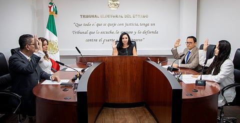 Morelia, Michoacán (MiMorelia.com).- Alma Rosa Bahena Villalobos, Magistrada Presidenta, las Magistradas Yurisha Andrade Morales y Amelí Gissel Navarro Lepe, así como los Magistrados Adrián Hernández Pinedo y Eric López Villaseñor, integrantes del Pleno del Tribunal Electoral del Estado analizaron y resolvieron en sesión pública del día de hoy, seis proyectos, un acuerdo plenario de cumplimiento parcial y cinco de sentencia.
