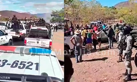 Churumuco, Michoacán (MiMorelia.com).- Un grupo de personas, entre ellos mujeres, niños y gente de la tercera edad, acudieron este día a la Base de Operaciones Interinstitucionales (BOI) de este municipio de Churrumuco, para protestar en contra de los dispositivos de seguridad que se hacen en esta región, lo que generó tensión en la zona y especulación en redes sociales.
