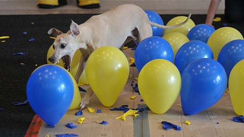 De la raza whippet, el canino enfrentaba ante sí un escenario con 100 globos, en Calgary, Canadá. Tenía que reventarlos todos en menos de medio minuto o poco más, para romper la anterior meta, que logró un terrier llamado Twinkie en California, Estados Unidos, de 39.08 segundos.