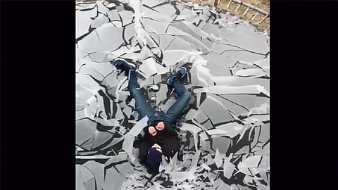 En el video se observa al joven rompiendo el hielo al caer desde un trampolín, por lo que se hizo viral contando con más de medio millón de reproducciones en unas horas, luego que lo enviaran a un canal de televisión de la localidad de Bakersfield, California.