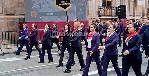 Esta fiesta grande de Morelia comenzó con el contingente de las autoridades municipales, encabezadas por el alcalde Alfonso Martínez Alcázar, mientras que desde el balcón del Palacio de Gobierno el mandatario estatal, Alfredo Ramírez Bedolla y los titulares del Legislativo y Judicial, así como diversas autoridades, presenciaron el desfile.