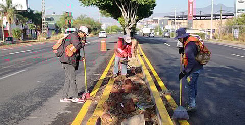 Morelia, Michoacán (MiMorelia.com).- Desde temprana hora, brigadas de limpieza de la Secretaría de Servicios Públicos, desplegaron un operativo en el libramiento Sur para dar mantenimiento a camellones y áreas verdes, con el propósito de que las áreas comunes de Morelia sean lugares agradables.