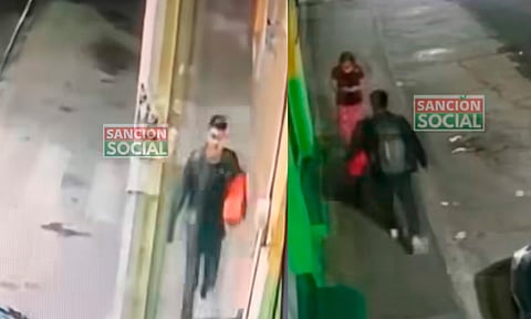 En el material compartido por la página Sanción Social, se puede apreciar como la mujer sale de su domicilio, y justo detrás de ella, se le ve al sujeto caminando.