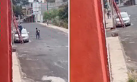 Un vecino grabó posterior a ello y captó cuando la fémina va jalando del brazo a quien probablemente es su hijo. Luego de grabar, el vecino fue a seguirla y se dio cuenta de que la mujer además está embarazada.