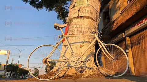 En ese árbol fue montada la bicicleta blanca, misma que representa un recordatorio de donde un ciclista perdió la vida.