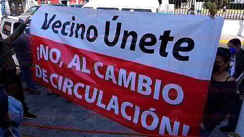 En el lugar, los inconformes gritaron consignas como “no queremos cambio” a la par de que mostraron una manta con la leyenda “vecino únete, no al cambio de circulación”; así mismo refirieron que entregaron la petición al gobierno municipal con la petición y sus motivos para negarse al cambio.