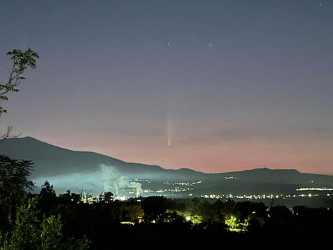 Morelia, Michoacán (MiMorelia.com).- El cometa C/2023 A3 apareció en el cielo del atardecer justo después de la puesta del sol este sábado 12 de octubre y seguirá elevándose en el cielo durante octubre a medida que se aleja del Sol.