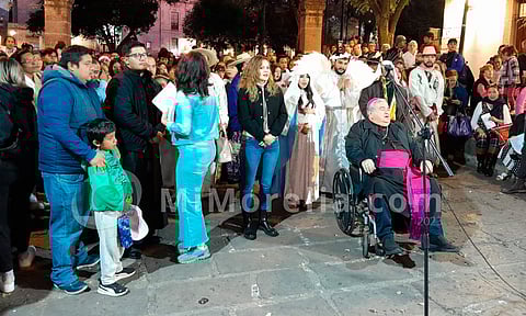 En punto de las 18:30 horas, el arzobispo de Morelia, Carlos Garfias Merlos, brindó unas palabras de agradecimiento y sobre el significado de la Navidad y las posadas que anteceden a esta celebración, para dar paso a la caminata que llegó a catedral, no sin antes pedir posada en el templo de Lourdes y en el de Las Monjas.