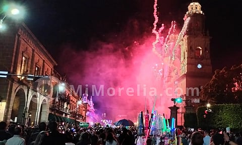 En la Catedral de Morelia, majestuoso edificio que ha hecho de Morelia, la ciudad consentida de visitantes de todo el mundo, y envueltos en un ambiente de regocijo, la música se siente más adentro, luego de que los fuegos artificiales le otorgan aún más brío.