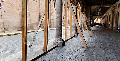 Morelia, Michoacán (MiMorelia.com).- Debido a que "el alma de acero de la columna" del portal Aldama sí sufrió daños, sería el doble el pago que deberá hacer el chofer de la camioneta de transporte que la impactó el 6 de junio de 2023 justo enfrente del domicilio de los propietarios del inmueble ubicado en el primer cuadro de la ciudad, a espaldas de la catedral.