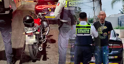Morelia, Michoacán (MiMorelia.com).- Un hombre fue detenido por oficiales de Policía Morelia mientras circulaba en una motocicleta sin luces y con documentación irregular sobre la calle Aquiles Serdán, en el Centro Histórico de la ciudad.