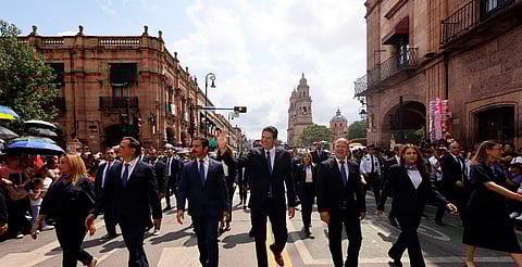 El Presidente Municipal, Alfonso Martínez Alcázar, encabezó el contingente que inició su recorrido en la avenida Madero, a la altura de Las Tarascas, y avanzó rumbo a Palacio de Gobierno.