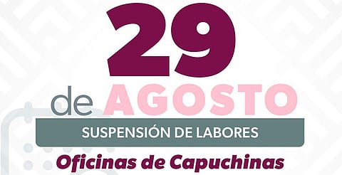 Morelia, Michoacán (MiMorelia.com).- La Secretaría de Finanzas y Administración, a través del Servicio de Administración Tributaria del Estado de Michoacán (SATMICH), informa que este jueves no abrirá la oficina receptora que opera en Capuchinas, en el Centro Histórico de Morelia, ya que en el lugar se llevará a cabo una reunión de trabajo con administradores y receptores de Rentas.