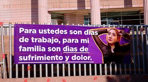 Sin afectar la vialidad, cerca de las 09:00 horas de este lunes los familiares de la víctima colocaron dos mantas en el inmueble con la leyenda "Para ustedes son días de trabajo, para mi familia son días de sufrimiento y dolor", así como pegatinas de manos de color rojo.