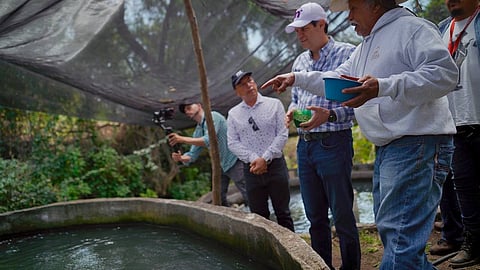 Morelia, Michoacán (MiMorelia.com).- El presidente municipal de Morelia, Alfonso Martínez Alcázar, encabezó una visita a la granja de trucha arcoíris en Chiquimitío, como parte de su compromiso por continuar el impulso de la producción piscícola en las tenencias de la capital michoacana.