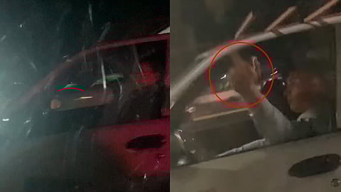 En uno de los visuales compartidos se muestra el momento en el que el hombre "pinta el dedo" a las mujeres, quienes viajaban solas en su vehículo.