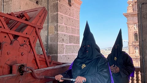 Por su parte, Ulises García Martínez, integrante de la archicofradía de campaneros y matraqueros de la Catedral de Morelia, explicó que este grupo está conformado por aproximadamente 60 personas.