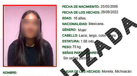 Morelia, Michoacán (MiMorelia.com).- La Fiscalía General del Estado de Michoacán (FGE) localizó a G.E.T.M., de 16 años de edad, quien el pasado 26 de agosto fue reportada como desaparecida en esta ciudad.