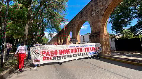 Morelia, Michoacán (MiMorelia.com).- Este martes integrantes de la Sección XVIII de la Coordinadora de Nacional de Trabajadores de la Educación (CNTE) continúan el denominado Plan de Acción para exigir el pago de casi cuatro quincenas a 28 mil trabajadores de la educación del sistema estatal.