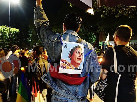 Morelia, Michoacán (MiMorelia.com).-Esta noche a las afueras de Palacio de Gobierno se llevó a cabo una velada pacífica en honor de le magistrade Jesús Ociel Baena Saucedo y su pareja sentimental de nombre Dorian Herrera, en la que con consignas y pancartas se exigió prontitud al esclarecimiento de sus muertes, esto luego de que la secretaria de Seguridad y Protección Ciudadana, Rosa Icela Rodríguez, asegurara que aún no se determina si se trató de un homicidio o un accidente.