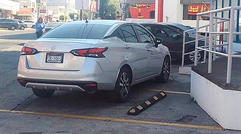 En la imagen se aprecia un auto de la marca Nissan, que está estacionado justo donde no se debe, pues pese a que están las señales, éste se encuentra en sentido contrario a ellas.