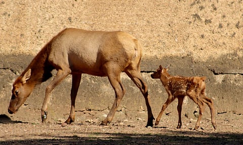El jefe de la Unidad Operativa de Atención a Mamíferos, Izmir Solís Quezada, dijo que, al nacer las crías de wapití o ciervo canadiense tienen la piel manchada, lo que les permite camuflarse con el suelo donde permanecen inmóviles y explicó que las crías son capaces de andar y mamar por si solas durante sus primeras horas de vida.