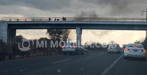 También sobre la vía Morelia-Tiripetío, se reporta el primer vehículo incendio como parte de las manifestaciones.