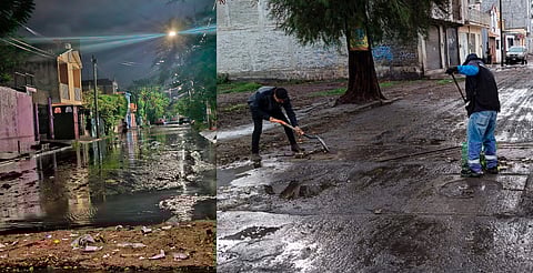 Por la tarde, se realizó desazolve de la red sanitaria, con equipo hidroneumático, para reforzar la limpieza en las calles atendidas previamente.