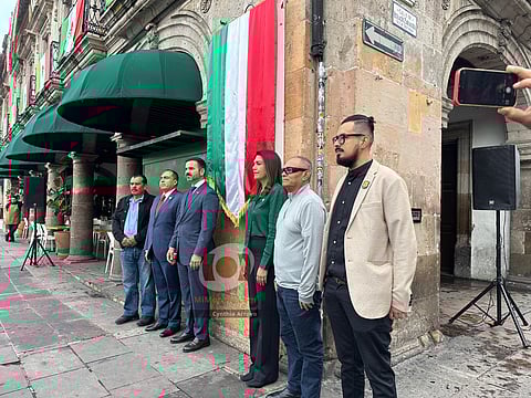 El secretario del Ayuntamiento, Yankel Benítez Silva, y la síndico Melissa Vásquez Pérez, encabezaron la develación en el portal Hidalgo del centro histórico, siendo acompañados por los regidores Salvador Arvizu Cisneros, Roberto Anguiano Méndez, y el secretario general del Consejo Ciudadano, Gerónimo Color Gasca.