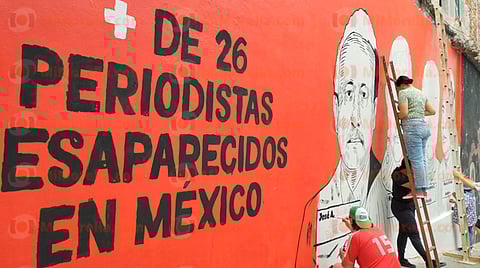 Con la leyenda, #DesaparecerPorInformar, los involucrados marcan en pared la memoria de 26 periodistas desaparecidos en México, entre ellos Mauricio Estrada Zamora, Ramón Ángeles Zalpa, de quienes se presentarán denuncias ante el Comité de Derechos Humanos de las Naciones Unidas, pues son ya 10 años de su desaparición.
