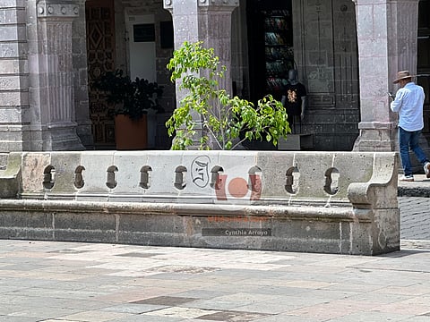 No obstante, pocos días después de que la banca fue restaurada, fue vandalizada con graffiti, por lo que ahora se está a la espera de un líquido especial para poder remover la pinta sin dañar la cantera.