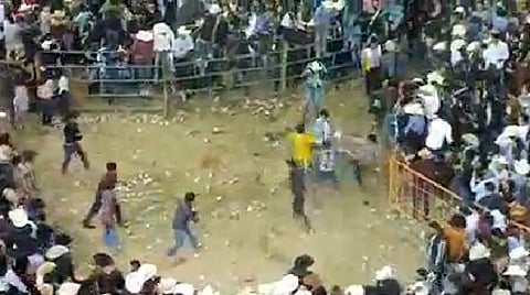 En visuales se mostraron los momentos en que supuestos estudiantes desataron la batalla campal en medio del rodeo, mientras que los demás aventaban entre sí vasos de cerveza.